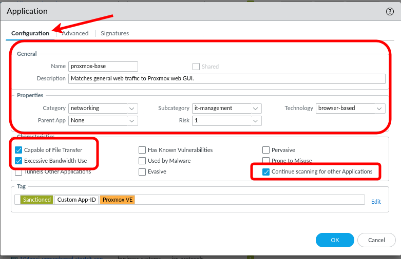 We will be creating the "proxmox-base" App-ID, this will match the general web traffic for administering the Proxmox cluster.