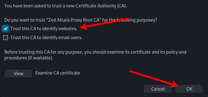 In the pop-up, select "Trust this CA to identify websites" and click "OK". This just determines what Firefox allows this CA to be used for.