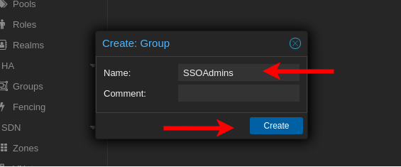 In the popup, enter a name for the group. This is the group we're using to control permissions for SSO users.
