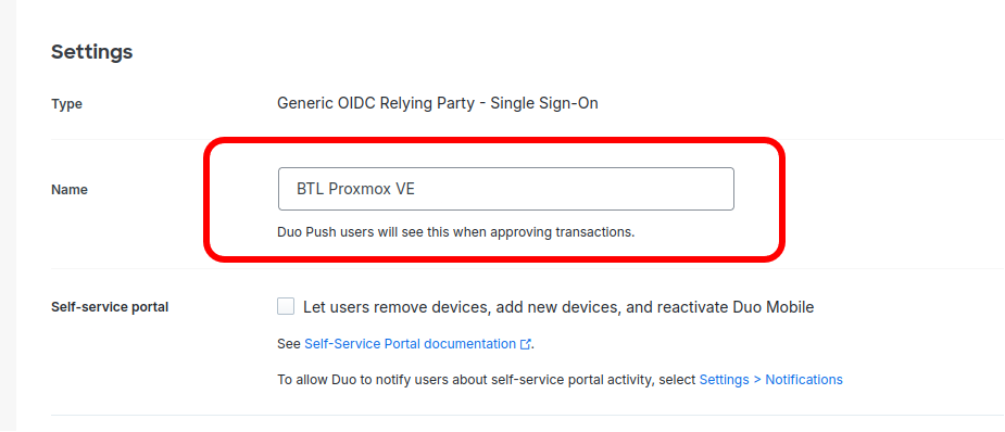 In "Comment:", enter a friendly name that'll be displayed when logging in. I chose BTL Duo SSO.