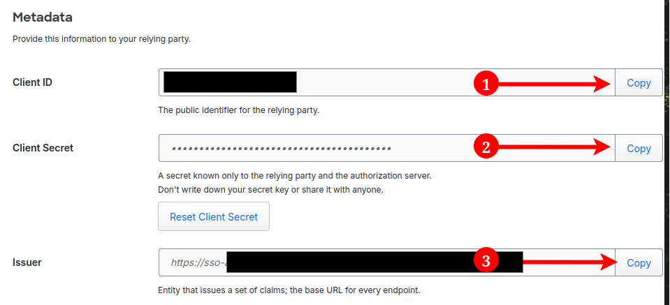 Copy your Client ID, Client Secret, and Issuer URL to a text file momentarily. You can alternatively just come back to these when we get to that point on Proxmox.