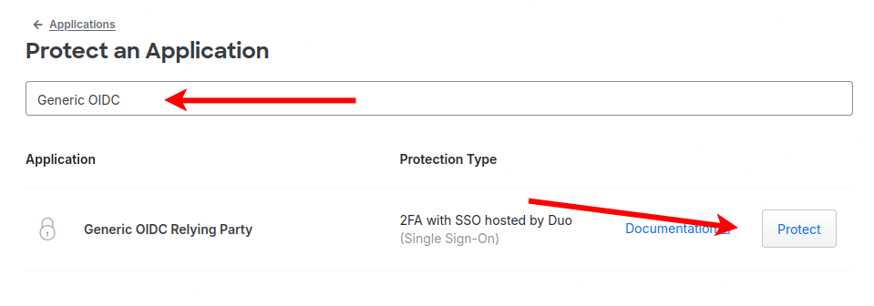 Search for "Generic OIDC" and click "Protect" on "Generic OIDC Relaying Party".