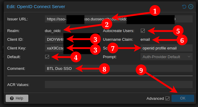 Enter the Client ID and Client Key we copied earlier. Reference your Duo application if required.