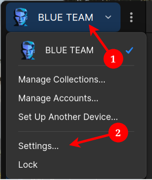 In the 1Password desktop app, click the account name in the top left hand corner and go to "Settings"