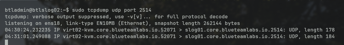sudo tcpdump udp port 2514