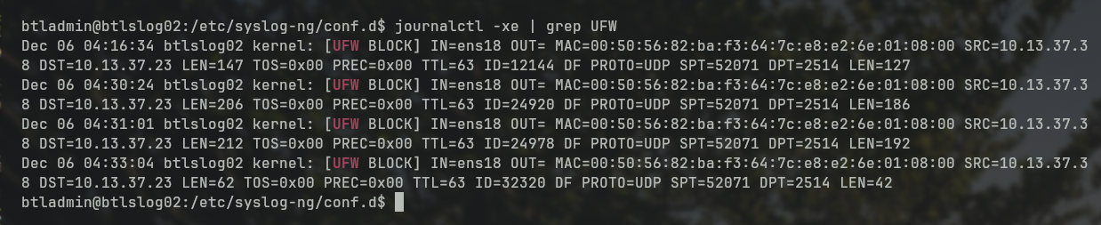 udp/2514 - Syslog-ng is logging the traffic to